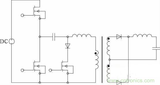 不對(duì)稱脈沖PWM 控制,其下管下降沿與上管的前沿互補(bǔ),上管可實(shí)現(xiàn)ZVS。只要設(shè)計(jì)的占空比較小,無(wú)需其它措施即使工作在較高頻率下開(kāi)關(guān)損耗也很小。變壓器直流偏磁,除占空比端點(diǎn)外,偏磁電流小于不對(duì)稱半橋。寬范圍適用性優(yōu)于傳統(tǒng)的不對(duì)稱半橋。低壓大電流的應(yīng)用場(chǎng)合有一定的優(yōu)勢(shì)。