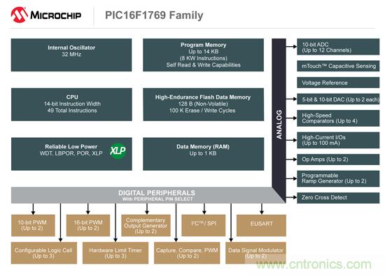 Microchip MCU8部門副總裁Steve Drehobl表示:“PIC16F1769系列真正強大的功能在于能夠?qū)崿F(xiàn)片上外設的互連,從而根據(jù)特定的應用來創(chuàng)建定制化功能。再加上能夠同時控制獨立閉環(huán)通道,新產(chǎn)品的功能遠遠超出了傳統(tǒng)低成本8位 PIC MCU。”