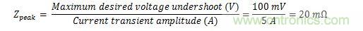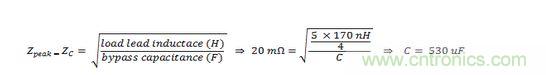 根據(jù)下面的表達(dá)式,確定負(fù)載導(dǎo)線(xiàn)網(wǎng)絡(luò)的指定峰值阻抗和旁路電容: