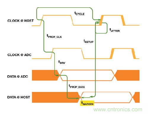 tPROP_CLK: 從主機到ADC 的傳輸線路的數據傳播延遲