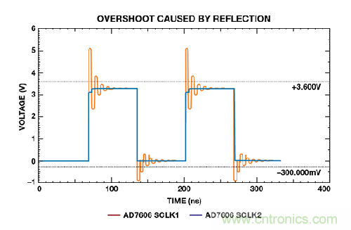 圖8. AD7606 IBIS 過沖模型仿真