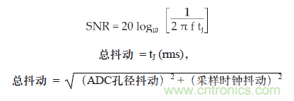 總抖動會產生誤差電壓,ADC 總SNR 的限制因素為