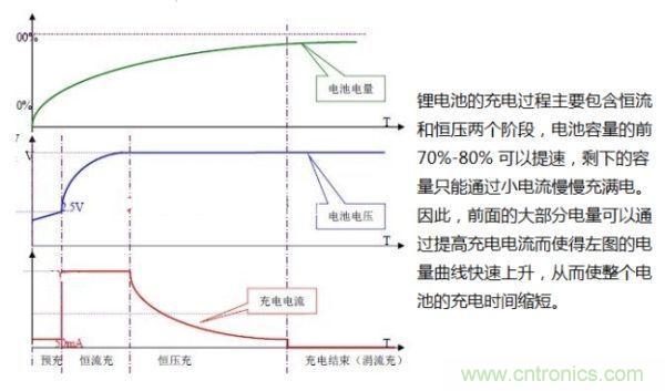 隨著對鋰電池容量的要求越來越高,鋰電池廠家也在加快新型電池的研發(fā),額定充電電壓從傳統(tǒng)的4.2V提高到4.35V,目前又出現(xiàn)了4.4V充電電壓的鋰電池,容量進(jìn)一步提高。而傳統(tǒng)的充電器輸出電壓為5V,充電控制電路會調(diào)節(jié)充電電壓和電流滿足鋰電池的充電特性。不同鋰電池的化學(xué)特性不同,因此充放電性能及安全性能也就不同,有的電池芯適合大電流充放電,而有些電池芯可以耐高電壓,所以,采用何種快速充電方式要取決于鋰電池芯的具體特性。提高充電器的輸出電壓可以在恒流階段提高充電功率,實現(xiàn)快速充電。
