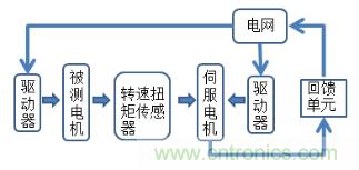 伺服電機(jī)可以進(jìn)行電機(jī)對拖,公共直流母線采用單獨(dú)的整流/回饋裝置,為系統(tǒng)提供電能,調(diào)速用逆變器直接掛接在直流母線上,當(dāng)系統(tǒng)工作在電動(dòng)狀態(tài)時(shí),逆變器從母線上獲取電能;當(dāng)負(fù)載被被測電機(jī)反向拖動(dòng)的時(shí)候,伺服電機(jī)將會變成發(fā)電機(jī),能量通過母線及回饋裝置直接回饋給電網(wǎng),以達(dá)到節(jié)能、提高設(shè)備運(yùn)行可靠性等目的。
