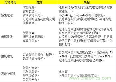 由表1優(yōu)缺點(diǎn)看來,鎳鎘、鎳氫及鋰離子電池較適合使用在電子產(chǎn)品上;而鋰離子電池?zé)o論是在體積、重量及容量(電子產(chǎn)品的使用時(shí)間)較優(yōu)于鎳鎘、鎳氫電池,也無記憶效應(yīng)的問題,所以鋰離子電池在電子產(chǎn)品使用上似乎方便許多。