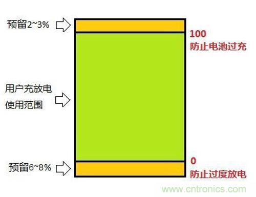 每塊電池在出廠時(shí)都會(huì)設(shè)定一個(gè)安全值。這是從電池安全的角度考慮,電池的初始電量中,生產(chǎn)廠家會(huì)保留一部分電量不被使用。之所以這樣做,完全是出于安全的考慮。電池不宜過度的充放電,如果電池被過度充電,極易誘發(fā)事故,最典型的例子就是新聞上常有的手機(jī)使用劣質(zhì)充電器充電導(dǎo)致電池過充而引發(fā)的爆裂事故。同樣,如果電池過度的放電,超過電池放電的終止電壓值,還繼續(xù)放電時(shí)就可能會(huì)造成電池內(nèi)壓升高,正、負(fù)極活性物質(zhì)的可逆性遭到損壞,使電池的容量產(chǎn)生明顯減少。因此,電池設(shè)定的“安全冗余”同時(shí)也是為了保護(hù)電池的正常壽命。