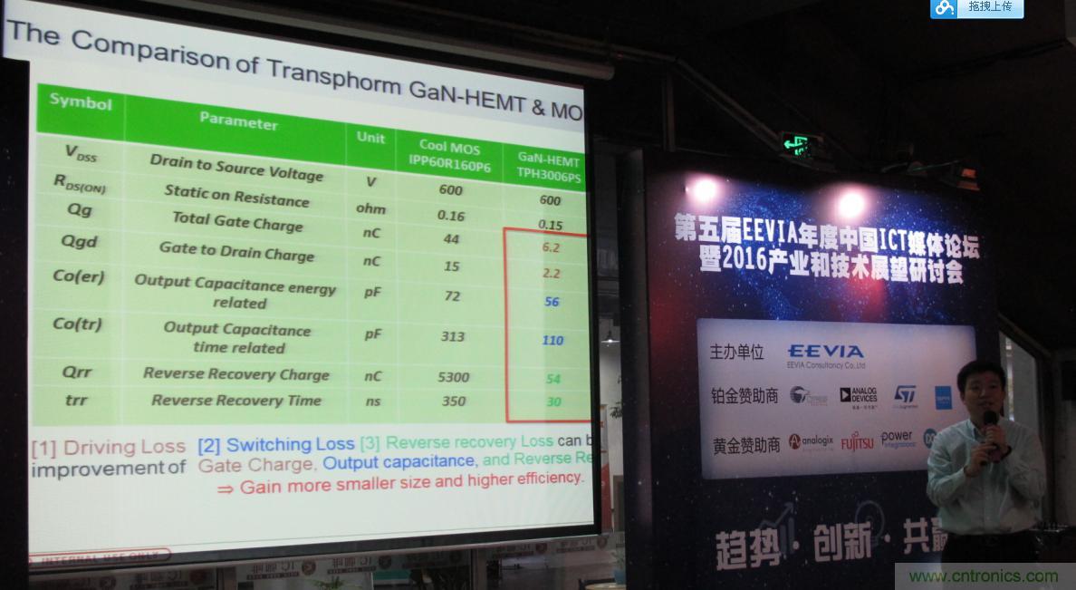 【導(dǎo)讀】氮化鎵技術(shù)擁有低功耗、小尺寸等特性設(shè)計(jì)上的獨(dú)特優(yōu)勢(shì),其優(yōu)勢(shì)以及成熟規(guī)?;a(chǎn)能力使其近年來(lái)在功率器件市場(chǎng)大受歡迎。在前不久舉辦的EEVIA第五屆ICT技術(shù)趨勢(shì)論壇上,這個(gè)主題受到國(guó)內(nèi)媒體的集體“圍觀”。