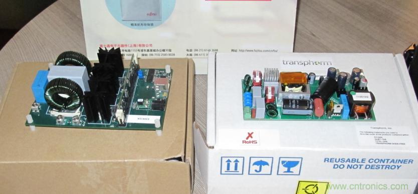 在演講現(xiàn)場(chǎng),富士通電子展示了兩款基于HEMT器件的電源模塊方案。“我們的PFC+LLC電源與類似的競(jìng)爭(zhēng)方案相比,電路板尺寸可以縮減45%,在滿載和10%的負(fù)載下,我們可以分別提高1.7%和3%的效率。對(duì)于很多效率要求苛刻的應(yīng)用來(lái)說(shuō),這是一個(gè)非常大的提升。”Eric指出。