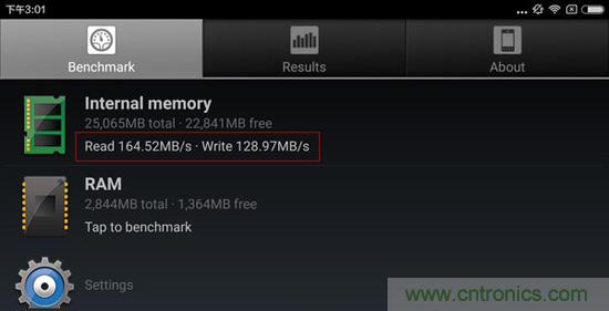 聊了這了這么多,UFS 2.0閃存的讀寫速度究竟有多快呢?相信這是不少朋友想要急切了解的。接下來,我們將通過終端產(chǎn)品的實測數(shù)據(jù)來說話。在專業(yè)存儲卡測速工具——“A1 SD Bench”的速度測試中,小米5(高配版)機身存儲(注:UFS 2.0閃存)讀取速度為415.97MB/s,寫入速度則為129.48MB/s。
