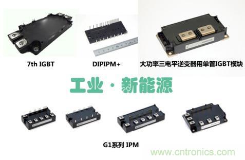 針對(duì)伺服驅(qū)動(dòng)器、光伏逆變器等工業(yè)市場(chǎng)需求,三菱電機(jī)此次重點(diǎn)推介整流逆變制動(dòng)一體化模塊DIPIPM+,G1系列IPM,第7代IGBT以及大功率三電平逆變器用單管IGBT模塊四種產(chǎn)品。憑借良好性能獲得市場(chǎng)青睞的第7代IGBT,兩種封裝方式兼容了現(xiàn)有市場(chǎng)主流產(chǎn)品封裝,并采用預(yù)涂熱界面材料(PC-TIM)有效降低了50%接觸熱阻。同樣備受期待的產(chǎn)品,還有今年全新開(kāi)發(fā)的“G1系列IPM”。它采用第7代 IGBT和FWDi芯片,配備多種額定電流對(duì)應(yīng)廣泛用途的