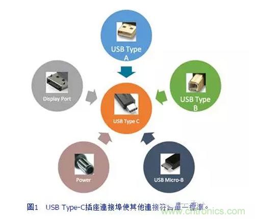 USB Type-C不但能夠減少使用的連接線,還可確保裝置之間順利協(xié)作,為使用者和消費(fèi)者的生活帶來相當(dāng)大的便利性,但卻也會(huì)為設(shè)計(jì)者和開發(fā)人員帶來麻煩。目前,市面上已有很多類型的USB連接埠和連接線,包括Mini、Micro、Type-A、Type-B等。繁多的種類很容易造成混淆,例如行動(dòng)電話的連接埠與筆記型電腦的連接埠不同,而筆記型電腦的連接埠又和數(shù)位相機(jī)的連接埠不同。USB Type-C 將大部分的連接縮減成單一標(biāo)淮(圖1),可涵蓋所有裝置并提高可用性。USB Type-C可支援多個(gè)通訊協(xié)定,并且可向后相容于USB 2.0。監(jiān)視器、耳機(jī)、充電器以及鍵盤等幾乎所有配件都能使用USB Type-C與電腦、平板電腦和智慧型手機(jī)等裝置進(jìn)行通訊。