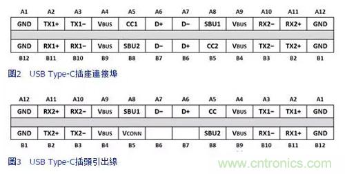 連接埠與連接線的配置如圖2、圖3所示。由于插座連接埠中的訊號(hào)採用對(duì)稱設(shè)計(jì),因此翻轉(zhuǎn)插頭并不會(huì)造成任何問題。USB 3.1 SuperSpeed TX/RX、VBUS、GND以及所有其他引腳會(huì)正確連接,不必考慮方向性。從使用者角度來看,因?yàn)門ype-C連接線可以任一方向插入,因此是Type-A連接埠的升級(jí)版。