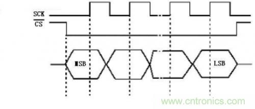 移位寄存器按位傳輸進(jìn)行數(shù)據(jù)交換,傳輸數(shù)據(jù)高位在前,低位在后(MSB)。在SCK的下降沿上數(shù)據(jù)改變,上升沿一位數(shù)據(jù)被存入移位寄存器。