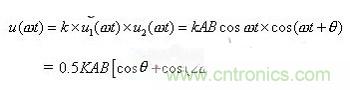 K為模擬乘法器的放大系數(shù)。進(jìn)行低通濾波后濾掉交流成分得: