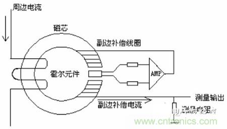 霍爾電流傳感器的原理圖如3-2。被測電流In流過導(dǎo)體產(chǎn)生的磁場,由通過霍爾元件輸出信號(hào)控制的補(bǔ)償電流Im流過次級(jí)線圈產(chǎn)生的磁場補(bǔ)償,當(dāng)原邊與副邊的磁場達(dá)到平衡時(shí)其補(bǔ)償電流Im即可精確反映原邊電流In值。