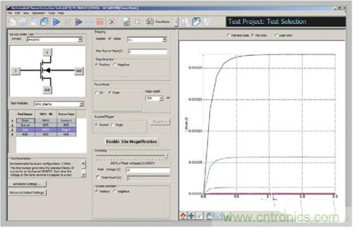對這類應(yīng)用,非常重要的一點是要有一整套測試功能,包括脈沖、DC和C-V。采用器件專用詞匯的軟件(而不是儀器專用詞匯)可以幫助簡化測量。這些軟件還可以簡化多臺源測量單元(SMU)儀器之間的交互,用戶可以把重點放在被測器件上,而不是測量儀器上。