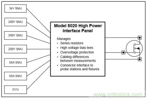 在對功率半導(dǎo)體器件執(zhí)行全面的DC I-V和C-V測試時,為減少遇到的問題,許多工程師采用高功率接口面板(圖3),最大限度地減少主要測量類型之間的連接變化。可以通過T型偏置進(jìn)行I-V和C-V測量,而不需改變連接,從而減少用戶出錯的機(jī)會。