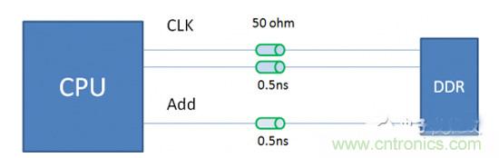 我們來回顧一下,DDR布線,線長匹配的基本原則是:地址,控制/命令信號與時鐘做等長。數(shù)據信號與DQS做等長。為啥要做等長?大家會說是要讓同組信號同時到達接收端,好讓接收芯片能夠同時處理這些信號。那么,時鐘信號和地址同時到達接收端,波形的對應關系是什么樣的呢?我們通過仿真來看一下具體波形。