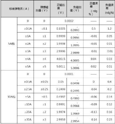 ZCP0030-50標稱直流精度為1%rdg±1mV,實測精度如表1所示。