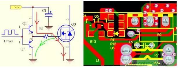 驅動源的地線要盡量靠近被驅動器件,以便 構成最小環(huán)路,減少振蕩與EMI問題