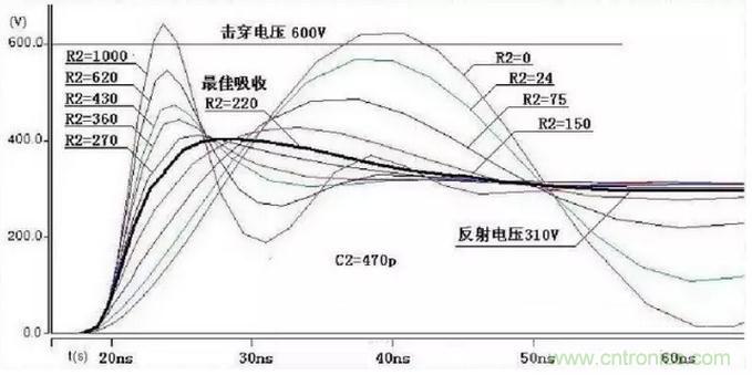 3、當(dāng)吸收電容確定后,一個適中的吸收電阻才能達(dá)到最好的吸收效果。