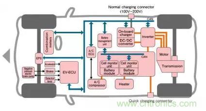 圖1展示了這些系統(tǒng)以及需要在EV中控制或通信的許多其他子系統(tǒng)。