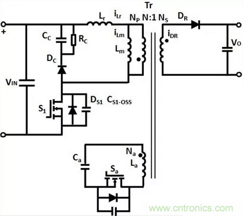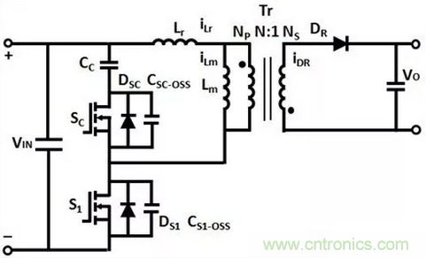 圖1:有源箝位反激變換器的電路結(jié)構(gòu)