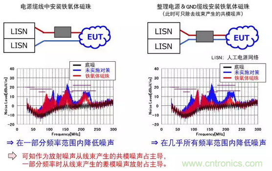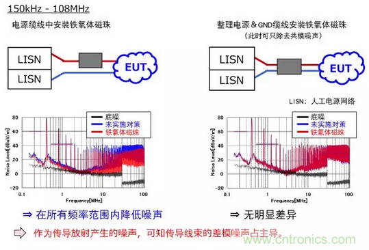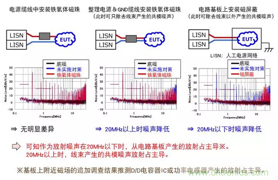 對于放射噪聲,也調(diào)查問題源是共模傳導模式還是差模傳導模式。(150kHz-30MHz帶域)