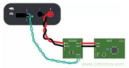 Otii工具還支持使用SENSE+和SENSE-輸入,通過四端子檢測方法測量輸入和輸出電壓。這里不討論這種方法,原因是電流相當(dāng)?shù)?,而且連接Otii所用的電纜很短,電阻很小。