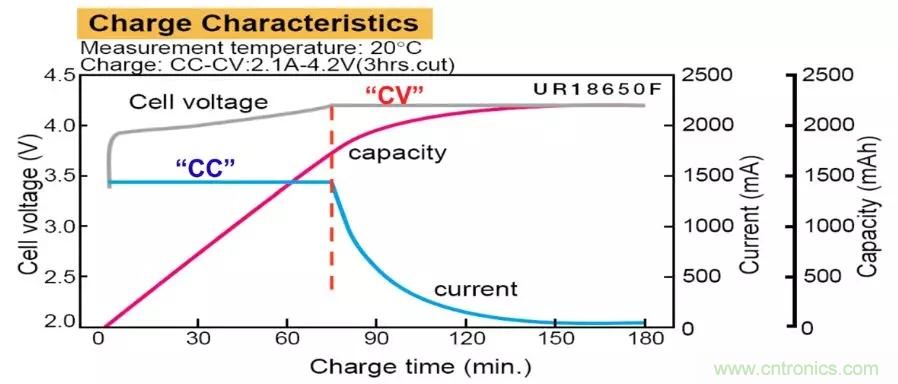 使用類似BQ4725A這類集成的充電管理芯片方案對鋰電池充電其實(shí)十分簡單。鋰電池直接連接到充電控制芯片BQ24725A的BAT管腳上,配置充電控制芯片的Charge Voltge,Charge Current,以及保護(hù)功能的Input Current Limit,使能充電功能即可。Charge Voltage(VCHG)是電芯的最大滿充電壓,Charge Current (ICHG) 是電芯允許的最大充電電流。典型的鋰電池充電特性如下圖所示,分為CC(Constant current)和CV(Constant Voltage) 兩個(gè)階段。CC階段恒定以最大充電電流持續(xù)對電池進(jìn)行充電,此時(shí)單位時(shí)間充入電池的電量是恒定的Q=ICHG*T。隨著電池充入電量越來越多,電池電壓會(huì)上升,當(dāng)電壓上升到最大滿充電壓時(shí)候,充電芯片將控制輸出電壓為恒定的最大滿充電壓,此時(shí)電流開始逐漸減小,充入電量的增加速度慢慢減慢,總充入電量仍然在增加。直到電流減小到截止電流點(diǎn),充電芯片停止充電,鋰電池達(dá)到充滿狀態(tài)。