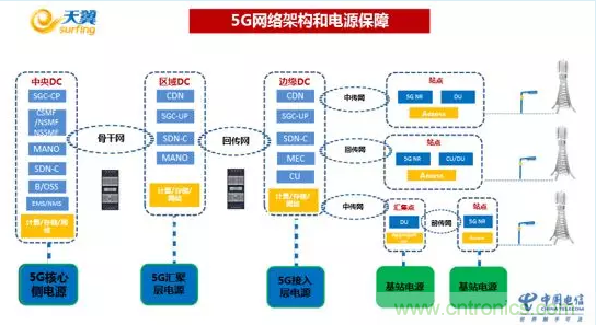 圖2 5G網(wǎng)絡架構和電源保障(來源:中國電信)