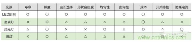 通過(guò)以上表格我們看到LED照明具有:形狀自由度高、光的指向性強(qiáng)、波長(zhǎng)可選擇、長(zhǎng)壽/高效卻低功率、響應(yīng)速度快、開(kāi)關(guān)性能好等特點(diǎn)。