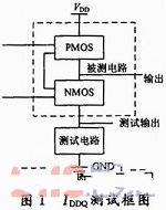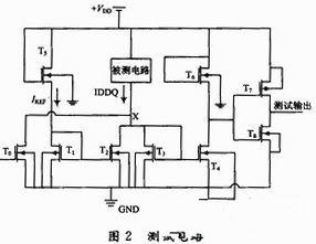 IDDQ測(cè)試是對(duì)功能測(cè)試的補(bǔ)充。通過測(cè)試靜態(tài)電流IDDQ可檢測(cè)出電路中的物理缺陷所引發(fā)的故障。IDDQ測(cè)試還可以檢測(cè)出那些尚未引起邏輯錯(cuò)誤,但在電路初期會(huì)轉(zhuǎn)換成邏輯錯(cuò)誤的缺陷。本文所設(shè)計(jì)的IDOQ電流測(cè)試電路對(duì)CMOS被測(cè)電路進(jìn)行檢測(cè),通過觀察測(cè)試電路輸出的高低電平可知被測(cè)電路是否有物理缺陷。測(cè)試電路的核心是電流差分放大電路,其輸出一個(gè)與被測(cè)電路IDDQ電流成正比的輸出。測(cè)試電路串聯(lián)在被測(cè)電路與地之間,以檢測(cè)異常的IDDQ電流。