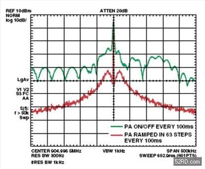 工程人員也需要了解到歐洲法令中,一項加諸在暫態(tài)功率上的限制新規(guī)格,也就是當(dāng)發(fā)射器在正常運(yùn)作中開關(guān)時,落入臨近頻譜的功率。將此限制加入最新法令中的目的,是要避免頻譜飛散(spectralsplatter)。
