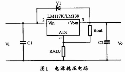需要說明的是,圖1中的穩(wěn)壓器管腳電壓差Vo-Vi應(yīng)在3-35V范圍內(nèi),超出范圍將不穩(wěn)壓;LMll7K的額定電流為1.5A,LMl38K的額定電流為5A;這兩個器件的兩者管腳定義相同;為保證穩(wěn)壓器正常工作,設(shè)計(jì)時可選用0.25W電阻ROUT,其值可選120Ω~240Ω。