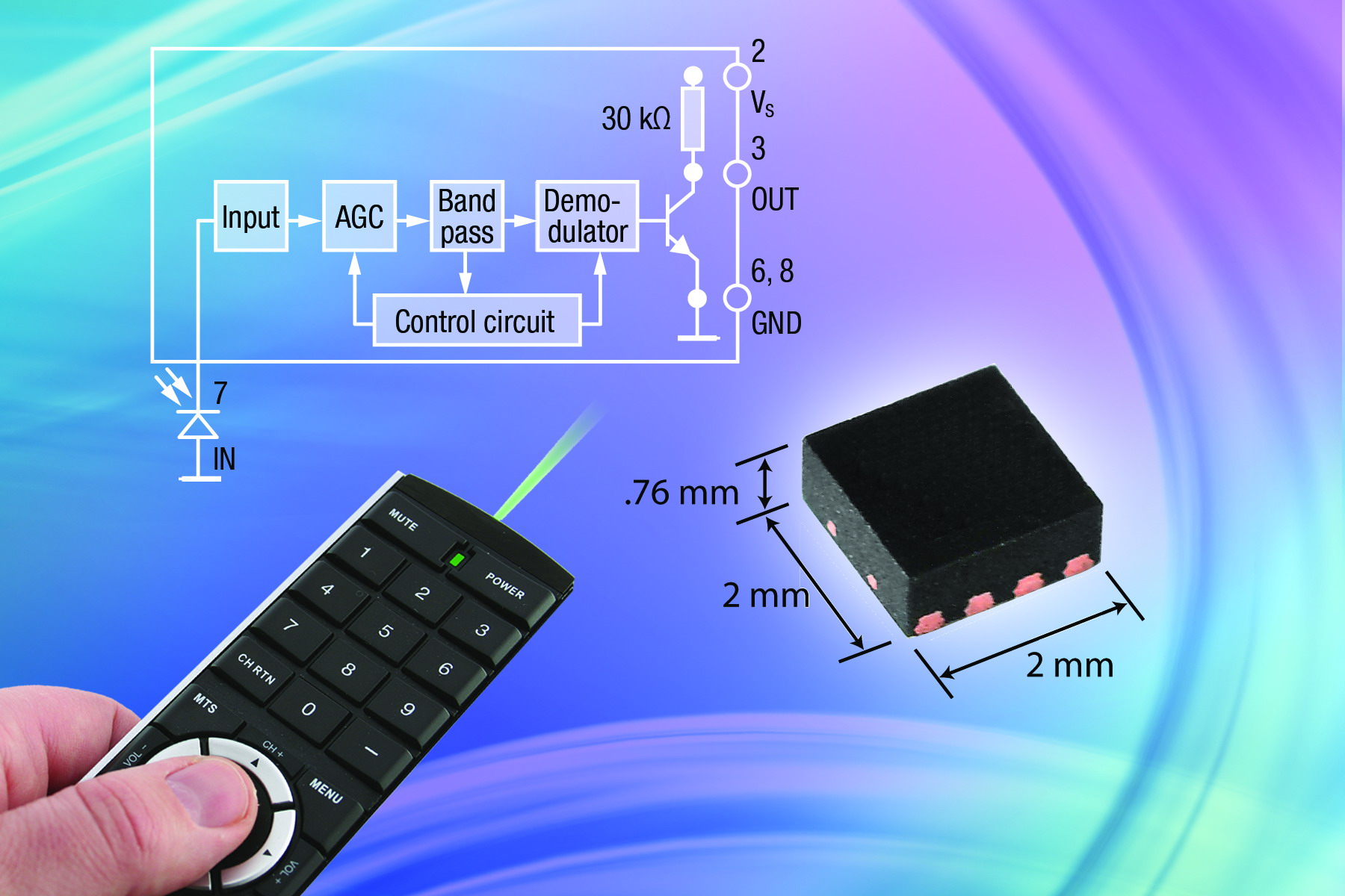 Vishay的標(biāo)準(zhǔn)遙控接收器是將光敏二極管和信號(hào)調(diào)制IC裝配在同一封裝內(nèi)。VSOP383..和VSOP584..是把信號(hào)調(diào)制IC與光敏二極管分開,單獨(dú)封裝于QFN封裝里,為各種應(yīng)用提供了極大的靈活性。例如,可以采用多個(gè)光敏二極管對(duì)準(zhǔn)不同方向來實(shí)現(xiàn)超寬空間接收信號(hào)的系統(tǒng),光敏管還可以采用可滿足特殊要求的封裝,或是接收非傳統(tǒng)波長,例如藍(lán)光,用于水下作業(yè)或可見光通信。