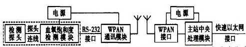 圖1 WPAN脈搏血氧飽和度側(cè)儀系統(tǒng)