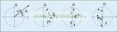 圖1用矢量圖顯示了兩個電壓恒定、相位不同的信號α與β如何合并起來形成一個任意電壓信號R,圖2是采用異相技術的功率放大器結構示意。