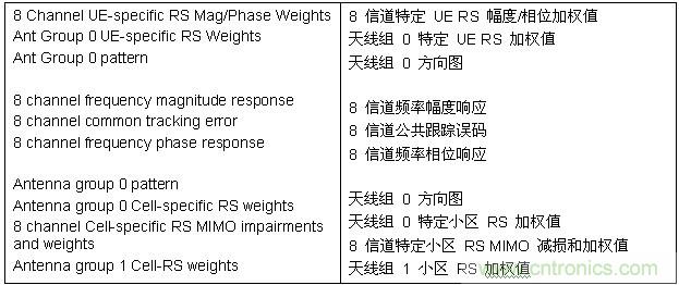 圖 9 中的表格顯示了對(duì) 8 個(gè)天線單元中的每 1 個(gè)進(jìn)行測(cè)量所得到的特定 UE RS 加權(quán)值。加權(quán)值可以同時(shí)從幅度和相位方面進(jìn)行測(cè)試,最多可細(xì)化到每個(gè)用戶發(fā)射相關(guān)的單個(gè)資源塊分配。測(cè)量應(yīng)用軟件還可提供每個(gè)空間多路復(fù)用層的單獨(dú)特定用戶 RS 加權(quán)值跡線。小區(qū) RS 映射提供了圖中的藍(lán)色曲線。