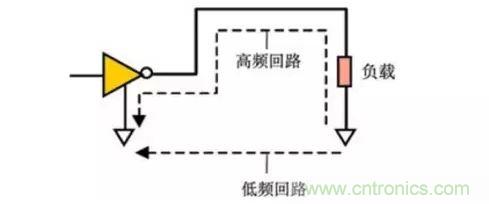低速電路中,電流沿著最小電阻路徑前進。低速電流從驅(qū)動端傳輸?shù)截撦d端,然后沿著地平面返回到驅(qū)動端。返回電流沿著最小電阻的路徑,它返回的電流密度和該路徑上的電導相對應。