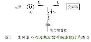 電力電容器由于諧波引起并聯(lián)諧振,則有異常電流流入電容器,其結(jié)果是導致電容器過熱,絕緣層被破壞。通常,當電源阻抗充分小(電源設備容量大)時產(chǎn)生的故障很少,但要考慮高次諧波對低壓電力電容的影響,因此可使用帶6豫串聯(lián)電抗器的電力電容器來減小諧波干擾,電抗器與電力容器、變頻器連接圖如圖1所示。