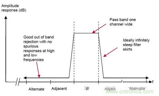 【導(dǎo)讀】中頻濾波器相對(duì)于RF信號(hào),工作的頻率比較低。理想的中頻濾波器如文中所示,具有平坦的通帶特性及好群延遲特性,能夠無(wú)失真的通過(guò)希望的信號(hào),同時(shí)具有很陡的過(guò)度帶,能夠提供足夠的鄰道抑制能力。