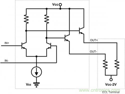 PECL 的輸入是一個具有高輸入阻抗的差分對,該差分對的共模電壓需要偏置到VBB =VCC-1.3V,這樣允許的輸入信號電平動態(tài)最大。對于不同芯片的輸入級,信號允許的共模電平可能會有些差異,請參考相應(yīng)的datasheet。有部分芯片在內(nèi)部已經(jīng)集成了偏置電路,使用時直接連接即可,有的芯片沒有加,使用時需要在芯片外部加直流偏置。