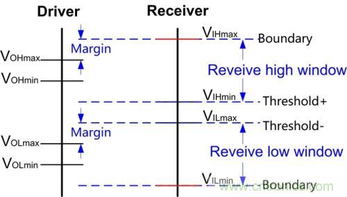 當Driver的VOH范圍全部落入Receiver的VIH窗口之內(nèi),Driver的VOL范圍全部落入Receiver的VIL窗口之內(nèi)時,可以保證Receiver可以正確接收Driver的輸出,否則會有潛在的互連不正確甚至損壞器件的可能。