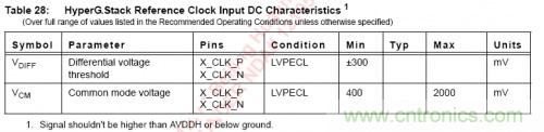 如某器件的某輸入口工作在LVPECL模式下。其指標如下(AVDDH=2.5V):