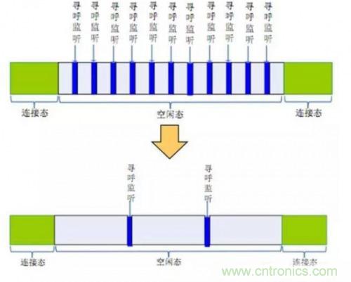 eDRX即非連續(xù)接收,是3GPP R13引入的新技術(shù)。R13之前已經(jīng)有DRX技術(shù),從字面上即可看出,eDRX是對(duì)原DRX技術(shù)的增強(qiáng):支持的尋呼周期可以更長(zhǎng),從而達(dá)到節(jié)電目的。繼續(xù)借圖:
