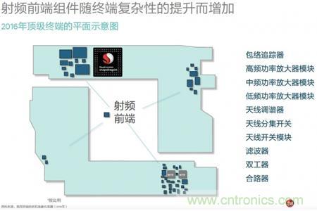 一方面,高端智能手機不斷推陳出新,屏幕越來越大、機身越來越輕薄,這些變化直接導致射頻前端組件的物理空間減少;另一方面,考慮到大尺寸屏幕對電池續(xù)航的影響,射頻前端的設計要比以往更重視電源使用效率;第三,網速越來越快,射頻前端模塊正在變得越來越復雜。
