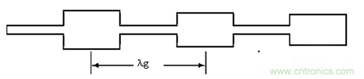 通過微帶傳輸線將貼片串聯(lián)組成串饋駐波陣,貼片間距為;其示意圖如圖3所示