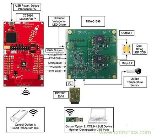 TIDA-01096 是 TI 的高能效、可調(diào)白光 LED DC-DC 驅(qū)動器,帶有智能藍牙連接參考設(shè)計,為工程師提供了一個用于開發(fā)智能照明解決方案的完整硬件和軟件平臺。