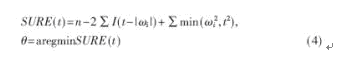 小波去噪的方法主要通過設(shè)置閾值來(lái)實(shí)現(xiàn),對(duì)漏磁信號(hào)的離散小波變換,計(jì)算所有小波系數(shù),剔除被認(rèn)為與噪聲有關(guān)的小波系數(shù),然后通過小波變換的逆變換得到信號(hào)。對(duì)于給定的信號(hào),選取閾值的方法很多,本文使用的是基于Stein無(wú)偏風(fēng)險(xiǎn)估計(jì)值最小化(SURE)的方法: